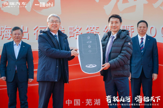 1月23日,“奇驭山河·嗨驰天下”奇瑞汽车&一嗨出行战略签约暨5000台新车交付仪式在安徽芜湖顺利举行。仪式现场,奇瑞汽车股份有限公司董事长尹同跃亲手向一嗨出行创始人、董事长兼CEO章瑞平交付新车钥匙,在全体来宾的共同见证下,两家行业领军企业的深化合作正式启幕。这是双方继2025年首次牵手后,在战略协作上的进一步升级,也标志着双方携手共创智慧出行新生态进入全新阶段,更创下了奇瑞汽车单次新车集中交付的最大规模纪录。